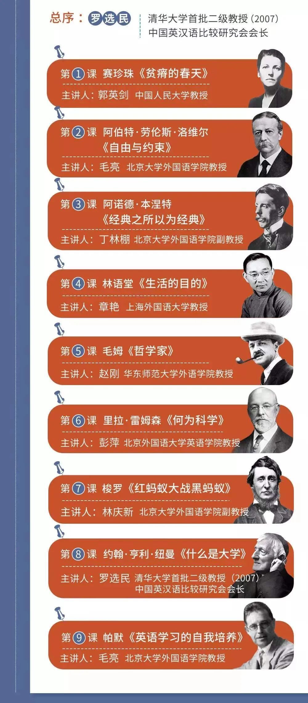 《西南联大英文课》:邀请8位国内英文领域的知名教授,系统讲解这部教材中的精选篇目。课程不单纯教你语言技巧,还会带你从人文的高度,深入理解这些名家名篇,解读东西方的文化内涵、历史和社会背景,再适当解析重点段落、语法。