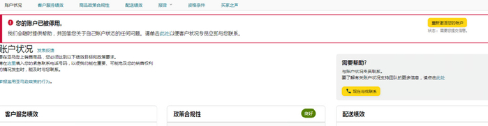 原本因为新的《消费者告知法案》没有完成验证工作而焦头烂额的卖家,近日又有新发现,增强版视频验证也找上门来了。据卖家收到的邮件显示,如果未完成额外的身份验证审查,则没有资格在亚马逊商城销售商品,而账户停用标识也已经早早地出现在了卖家后台。