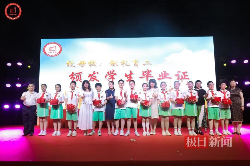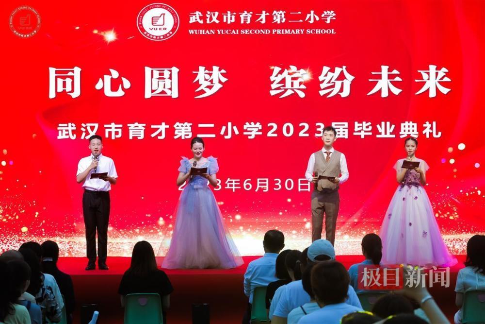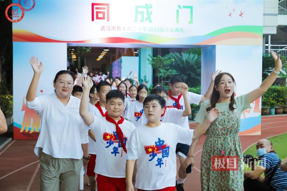 6月30日晚,武汉市育才第二小学举行了“同心圆梦 缤纷未来”2023届毕业典礼。565名毕业生身着统一班服,在爸爸妈妈的陪伴下,带着成长的喜悦与对母校的不舍,再一次走进熟悉的校园,参加他们在母校的“最后一课”。