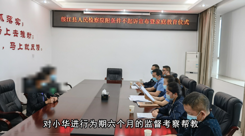为达到教育、感化、挽救的目的,遂依法对小华作出附条件不起诉决定,给他一次改过自新的机会。随后,我们还与监护人、团县委、社区共同成立了联合帮教小组,四方共同签订《监督考察协议》,对小华进行为期6个月的监督考察帮教。