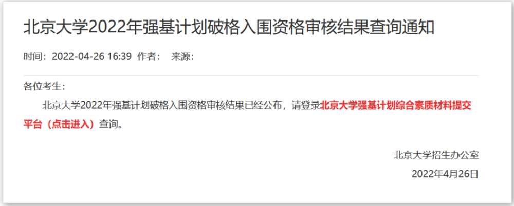 根据今年的招生简章,清北两校定于昨日(4月26日)公布破格资格审核结果。