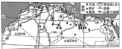 9.看图可知,该区域内陆地区陆路交通以公路交通为主,矿产资源丰富的地区多位于公路沿线,这里公路线密集,运输便利,公路主要是随着矿产资源的开采修建的,交通运输网布局的主导因素是矿产资源,B正确;看图中内陆地区城镇分布稀疏,城镇分布的地区交通线并不密集,A错误;看图中等高线可知,这里地形平坦开阔,地形对交通运输网布局影响不大,C错误;据所学可知,该区域内陆地区为撒哈拉大沙漠,该区域淡水资源的分布没有太大区别,淡水资源不是交通运输网布局的主导因素,D错误。故选B。