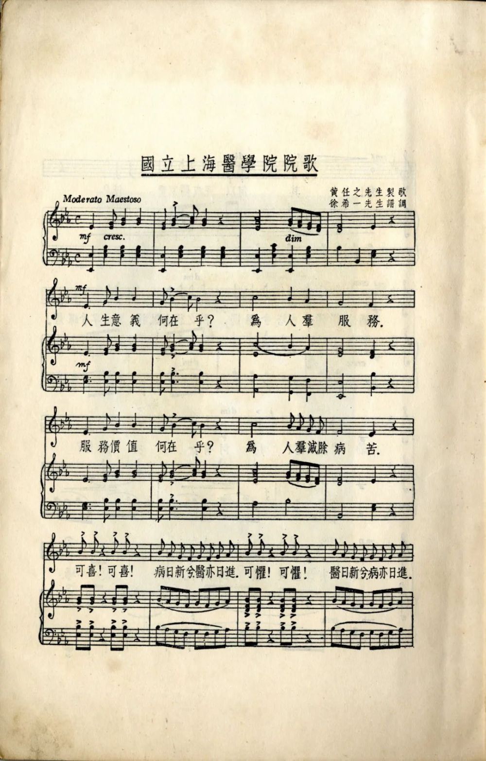 “人生意义何在乎?为人群服务。服务价值何在乎?为人群灭除病苦。”1935年,时任国立上海医学院院长的颜福庆邀请好友黄炎培为上医填写校歌歌词,将“为人群服务”写入校歌。