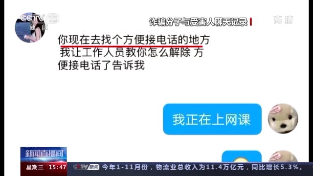 彭阳县七年级学生 小丽:当时我正在上网课,有一个陌生人添加我的钉钉号,我刚开始没同意,他反复添加我的钉钉号,后来我同意了。他恐吓我说,如果你不给钱的话,我们就过来把你爸妈抓走。