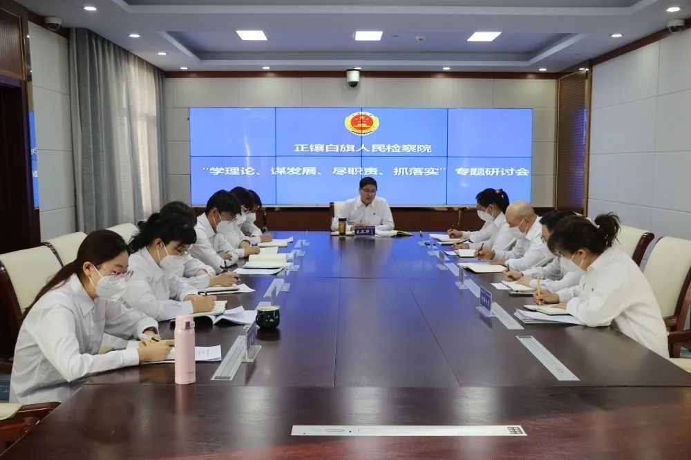 进行“学理论、谋发展、尽职责、抓落实”专题研讨,集思广益,明确目标,推动全年工作良好起步开局。通过集中研讨,深入学习贯彻党的二十大精神,自觉接受党对检察工作的绝对领导,从政治上、思想上、行动上贯彻落实习近平法治思想,贯彻实施《中共中央关于加强新时代检察机关法律监督工作的意见》和自治区党委重点措施,把思想和行动统一到全国、全区检察长会议和全盟检察工作会议精神上来,从预防打击刑事犯罪、抓好刑事诉讼监督、落实“少捕慎诉慎押〞刑事司法政策、实施认罪认罚从宽制度和涉案企业合规制度、组织检察听证、解决刑事检察“三高两低”问题、开展法治宣传等方面明确今后思路,开启新的征程,推动业务工作不断向前迈进。