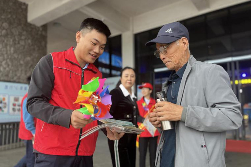 志愿者向旅客讲解道路安全驾驶相关知识。李杰摄