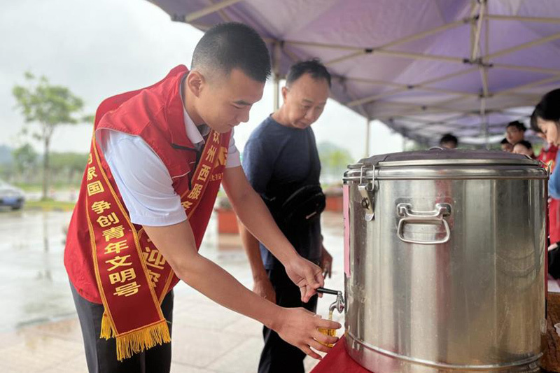 志愿者为旅客提供免费“凉茶”。李伟摄