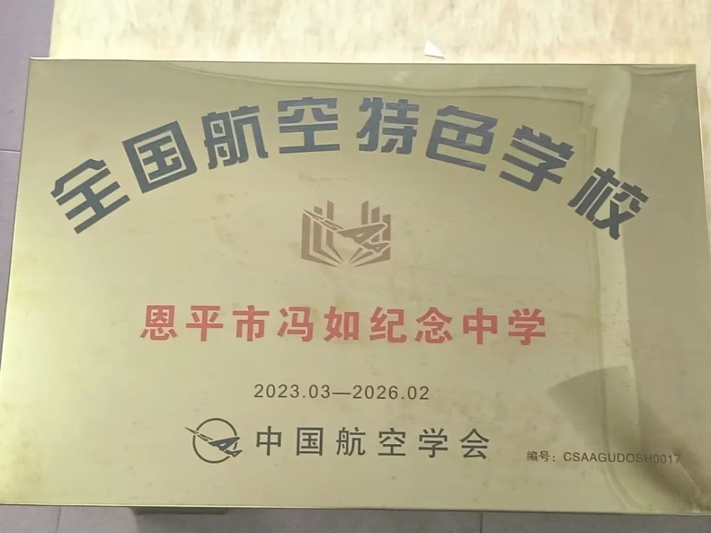 冯如纪念中学、冯如小学、恩平一中获颁“全国航空特色学校”牌匾。