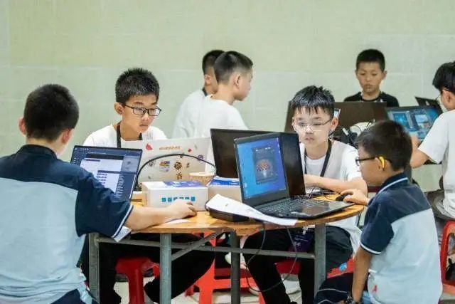 选手正在进行蜂群舞蹈编程赛。?恩平市教育局供图