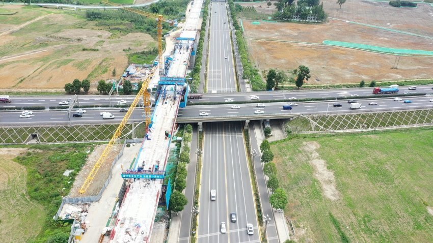 图为27号线一期工程高架段工区顺利贯通。成都轨道集团供图