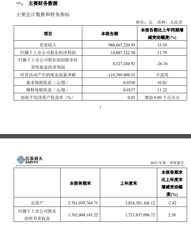 今年6月,江苏舜天发布了2023年一季度财报,数据显示公司在这个季度取得了可喜的业绩表现。