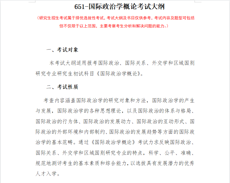 (图源云南大学研究生院官网公告附件)接下来,大神与各位政治学考研的小伙伴一起来看看云南大学最新修订的2024年651国际政治学概论和848近现代国际关系史考试大纲吧!