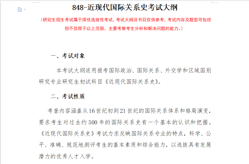 原先的科目804当代中国政府与政治、883政治学与国际关系综合、884外交学统一更改为848近现代国际关系史,涉及的专业有国际政治(030206)、外交学(030208)、区域国别研究(0302Z2)。
