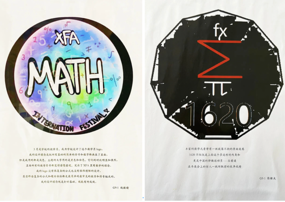 对于掌握了更多数学工具的初中生而言,数学是艺术和创意的载体。他们设计的“数学月Logo”不仅脑洞大开,而且有深刻的内涵。