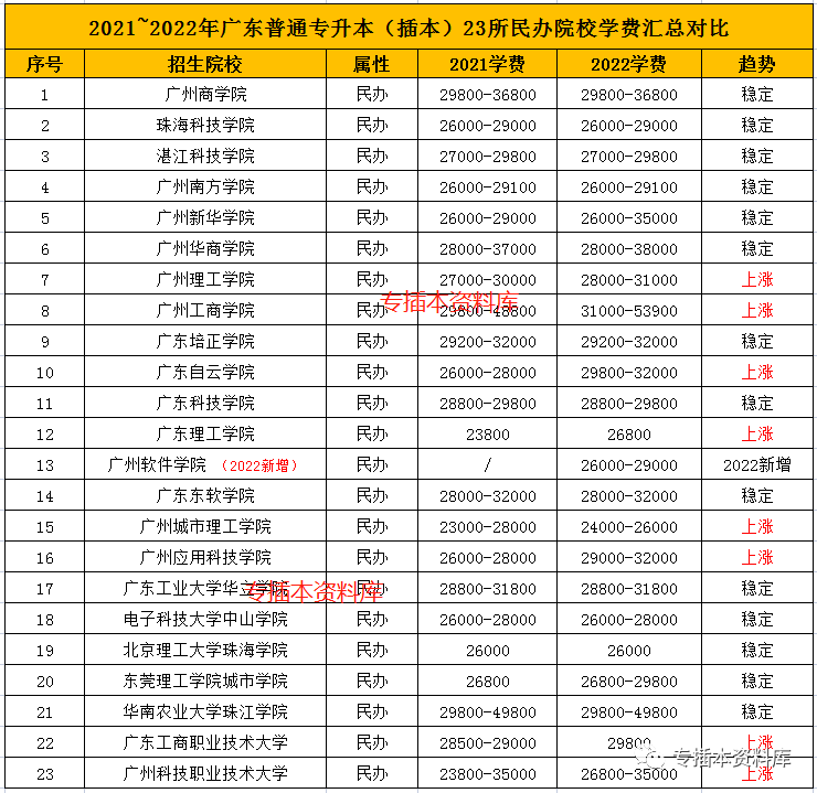 其实民办学校的学费也不是全部都是一个价的。我查阅了相关资料,整理出广东专插本23所民办院校2021年的学费汇总,得出下表。