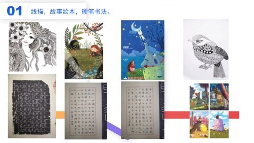丰富多彩的艺术教学课程,线描艺术,色彩规律的认知。