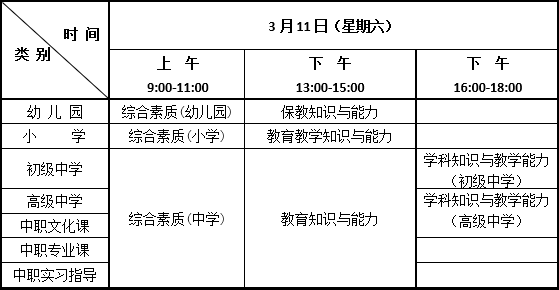 (二)考试时间:2023年3月11日,所有考试科目均采用纸笔方式进行(考试科目见附件),具体安排如下:
