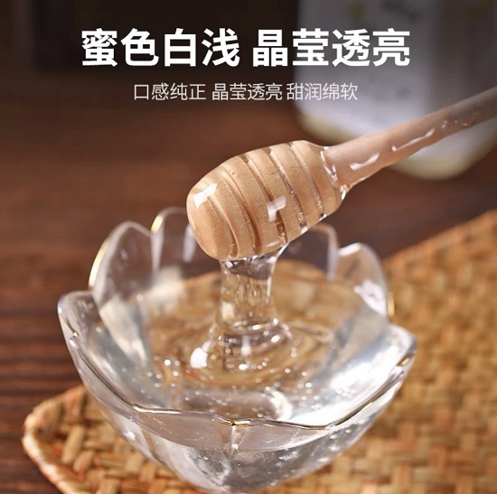 其次,洋槐蜜的种类当中,不少产品从颜色来说,几乎都是白色偏黄的居多,能达到纯净透亮的那种水平的洋槐蜂蜜可谓是少之又少,因此咱们看这款蜜之珍旗下的经典洋槐花蜂蜜,这透亮无比的色泽就足以证明,它的品质肯定是珍品当中的珍品。
