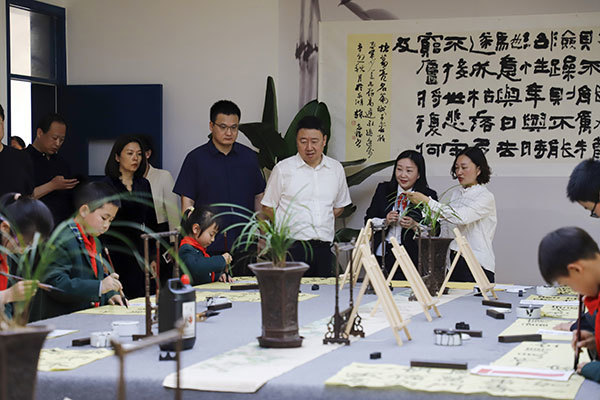 随后,考察团一行来到同伴厅参观师生们创作的书画作品,大家对学校丰厚的文化底蕴和先进的办学理念给予了高度赞扬。