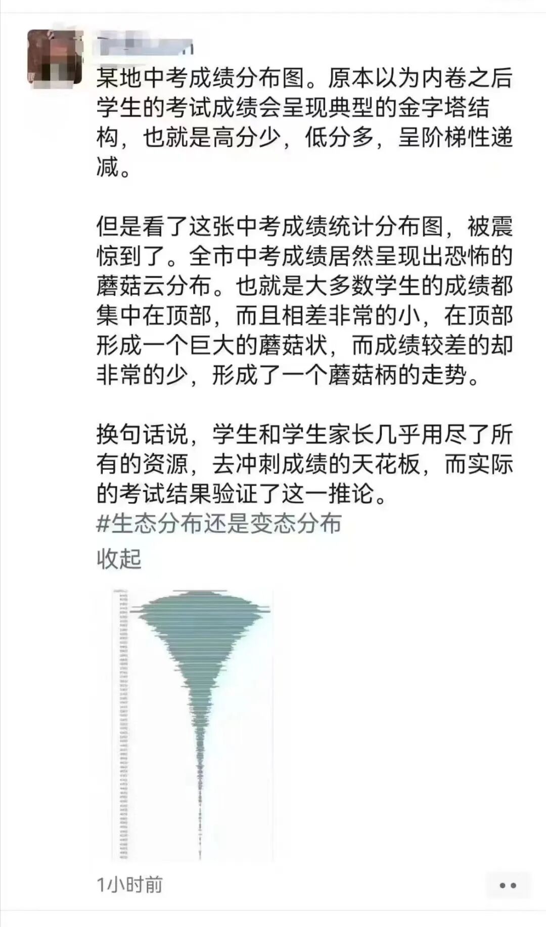太恐怖了,来看这张中考成绩“蘑菇云”分布图