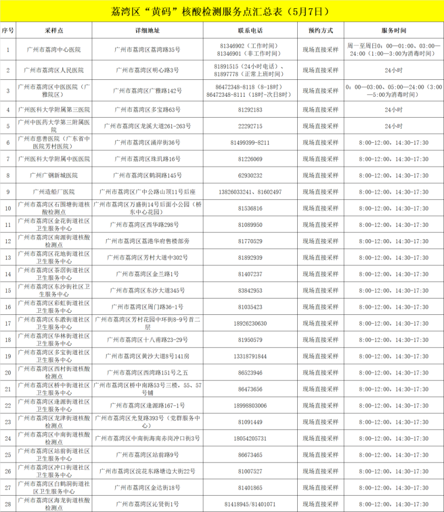 三、检测地点详见附件:《5月7日核酸检测点》,请根据所在村、社区工作人员的通知指引,分时段有序到达指定地点开展核酸检测,避免人员聚集和等候时间过长,做到“应检尽检”,确保不漏一户、不落一人。居家隔离和居家健康监测人员另行安排核酸检测。