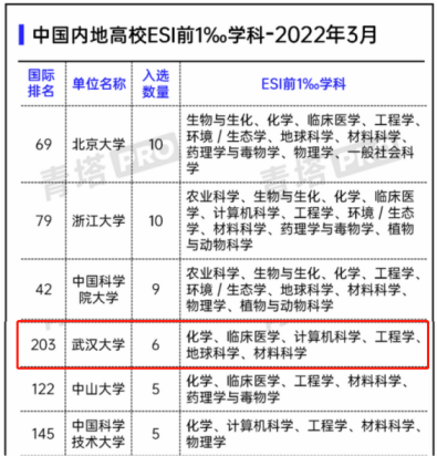 (2022年发布的ESI学科排名,学校供图,央广网发)