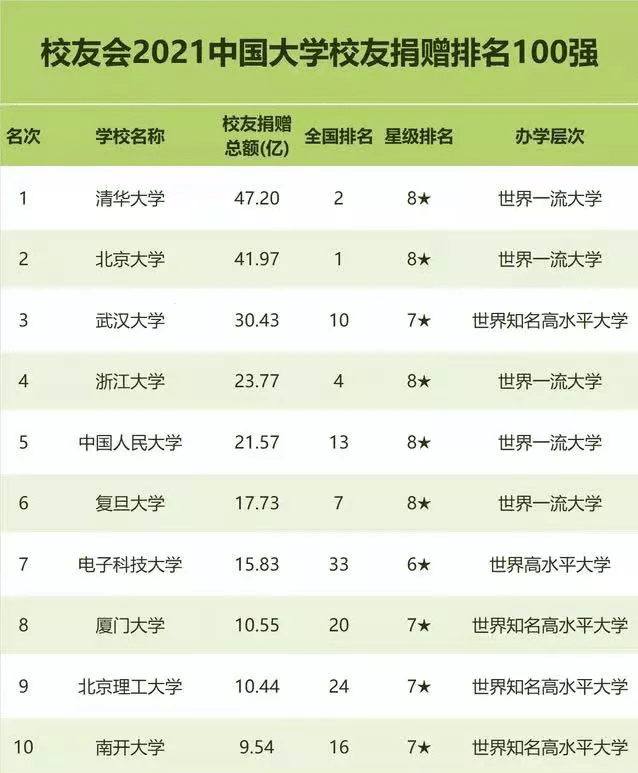 从武汉大学走出的优秀校友遍布世界各地,投身于各行业。2019年新当选两院院士本科校友中,武汉大学位居全国第5;QS2022世界大学排名雇主声誉排行榜中,武汉大学位居全国第6,国际161名;在2021中国大学校友捐赠排名中,武汉大学累计接受校友捐赠30.43亿元,排名全国第3;在《泰晤士高等教育》全球CEO母校排名中,武汉大学位居亚洲第一。(武祺迅 何可人 闵芊芊 龚佳欣)