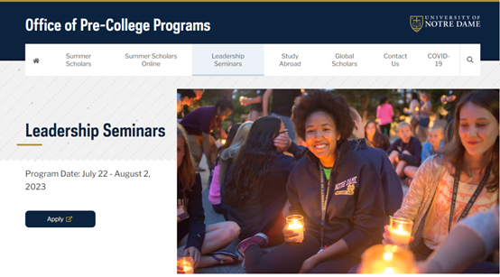 领导力研讨班是圣母大学校园内的一个为期10天的竞争性项目,面向在社区中表现出令人印象深刻的领导力的学术天才学生。