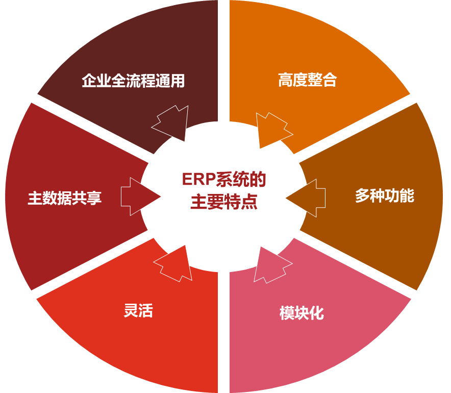 ERP系统跳出了传统的职能部门划分,并完成了从采购到付款、销售到收款、设备管理、质量监管、作业管理到产品研发管理、人力资源管理等复杂流程的集成,以及从企业内部到企业外部的跨职能部门(例如外部客户和供应商)的业务集成管理。