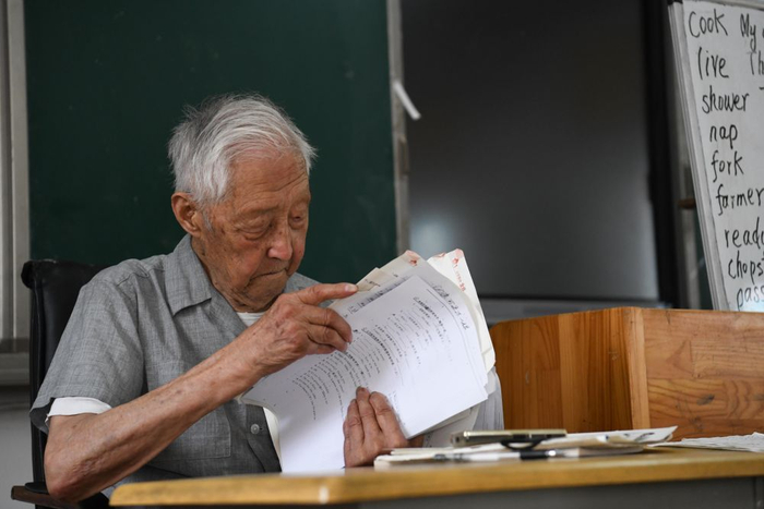 今年95岁的叶连平是安徽省马鞍山市和县卜陈学校的退休教师,1986年加入中国共产党。2000年,他在自己家里开办“留守未成年人之家”,为乡村孩子免费补习英语,至今已有23年,2000多名学生接受过他的义务辅导。