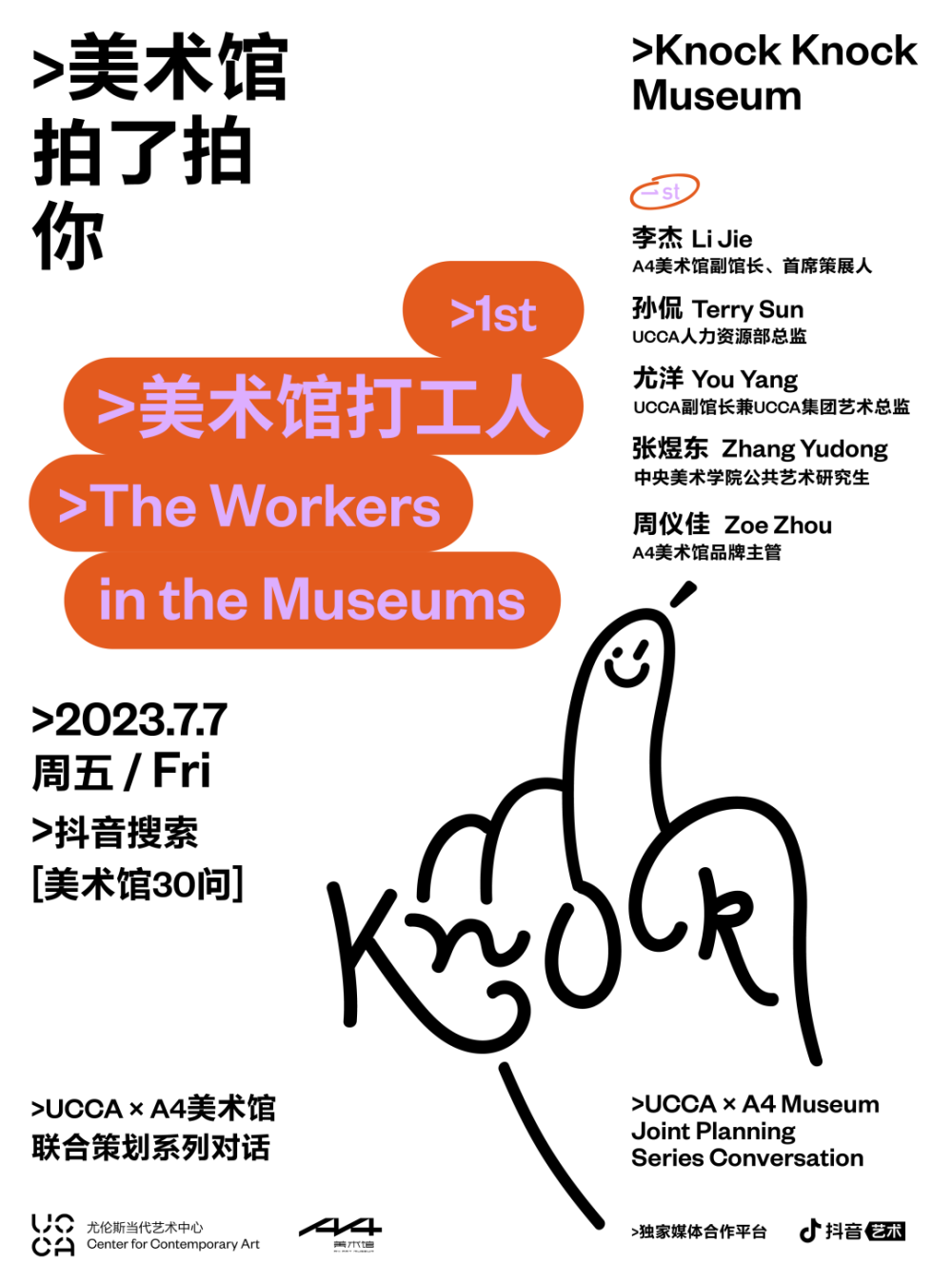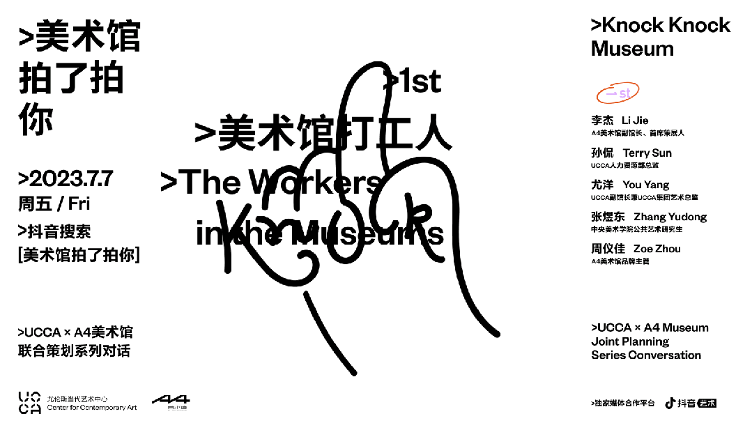 UCCA与A4美术馆联合策划“美术馆拍了拍你”系列对话,将目光置于求职、生态、展览、公共与未来五个方位,希望通过与艺术工作者分享交流的过程,在分享中解答公众对于美术馆的重重迷思,揭开关于美术馆的现实与想象。