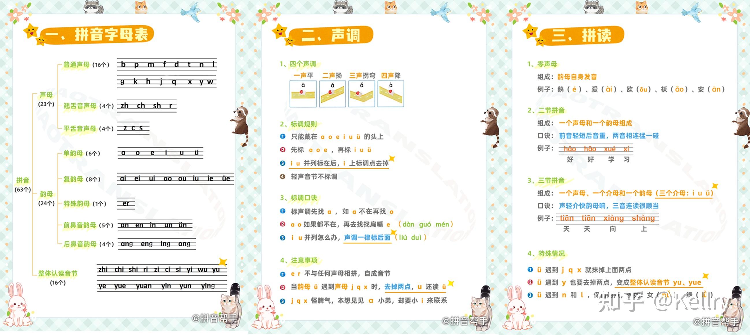 拼音拼读练习再有就是一些在学习拼音的过程中非常容易出错的一些知识点,如“ü的去点原则”“拼音的标调规则”等,都进行了很全面的整理。