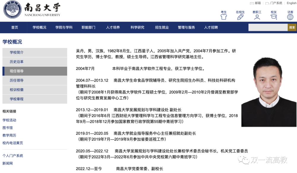 近日,江西省人民政府发布领导干部任免通知,经省政府研究决定:吴丹任南昌大学副校长(试用期一年)。南昌大学官网“现任领导”一栏已更新关于吴丹教授的介绍。