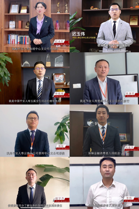 云南分公司班子成员及三级机构负责人带头讲消保,弘扬诚信文化,确保消保精神和工作要求传达到每一级部门和全体工作人员,向公众传递金融消保知识、展现平安消保决心与风采,全面营造“人人学消保?人人重消保”的良好氛围。