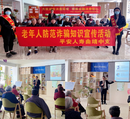 3月16日,在曲靖中支走进润清福养老院开展养老防诈骗宣讲活动,并向全体老年群体至于亲切慰问。活动中,周傲羽经理向老年群体宣讲消费者享有的八大权益,同时,详细介绍了防诈骗知识,特别为老年人揭露了“保健品”骗局、“养老金”骗局、“网络”骗局等多种诈骗形式的手法和作案特点,劝导老年人在日常生活中要提高警惕,对犯罪分子的花言巧语、危言恐吓,一定要牢记“不听、不信、不转账、不汇款”,守护好自己的“养老钱”。