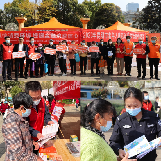 3月15日,平安人寿云南分公司联合辖区派出所走进万宏国际社区开展金融知识教育宣传活动,活动设立“权益保障站”、“金融反诈站”、“信息安全站”,以折页、手册、展立架、有奖答题、拍照打卡、真实案例讲解等形式,吸引了大量的老年人和其他公众前来咨询,并积极参与。活动邀请到了辖区派出所民警现场助力金融反诈宣传,派出所民警亲自向参加活动的公众讲解真实的金融诈骗案例,揭示金融诈骗常见的套路,提醒公众,尤其是老年人在日常生活工作中要提高警惕,如果在金融消费活动中遭受非法集资、代理退保、个人信息被非法使用等侵害消费者权益的行为,要第一时间向公安机构或金融机构需求帮助。提高了公众的风险意识,助力提振金融消费信心。