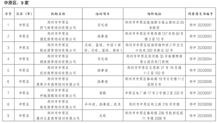 39家!郑州市第一批体育类校外培训机构白名单发布
