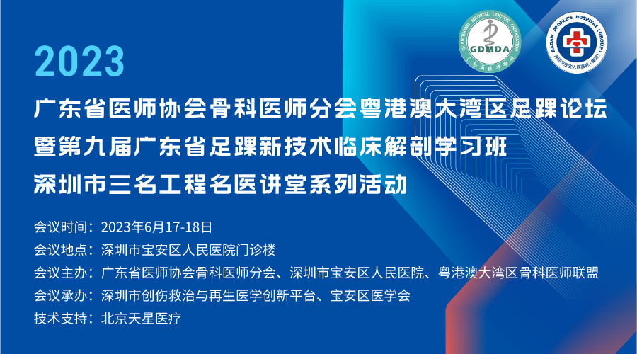 6月17-18日,“2023年广东省医师协会骨科医师分会粤港澳大湾区足踝论坛暨第九届广东省足踝新技术临床解剖学习班,深圳市三名工程名医讲坛系列活动”在深圳市宝安区人民医院顺利举办。