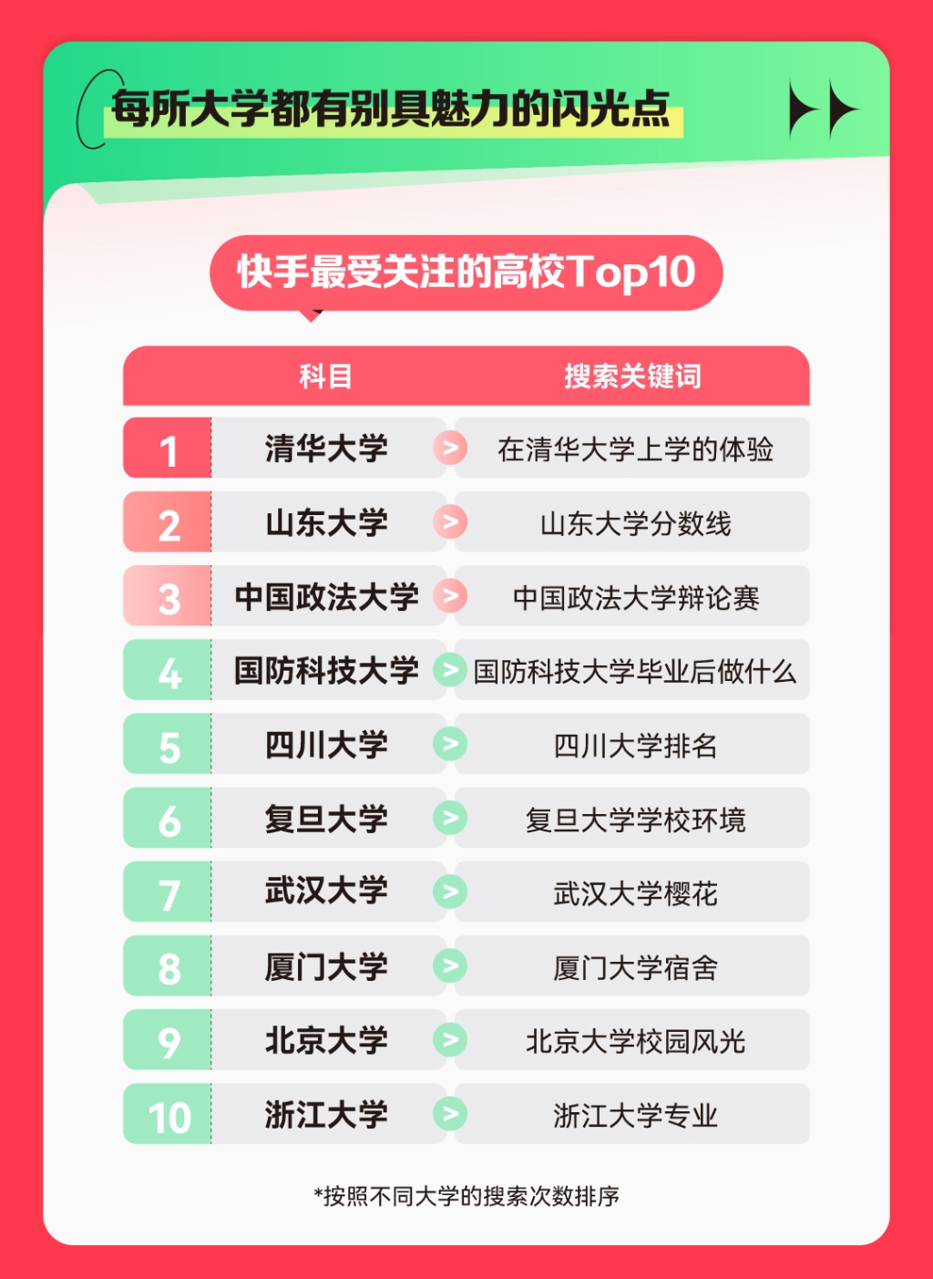 搜索量最高的大学专业TOP10。快手供图