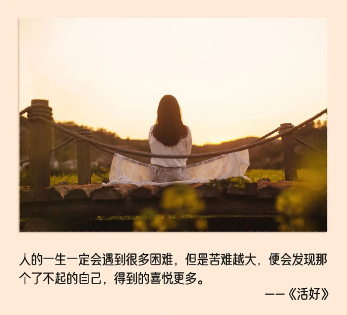 人的一生一定会遇到很多困难,但是苦难越大,便会发现那个了不起的自己,得到的喜悦更多。
