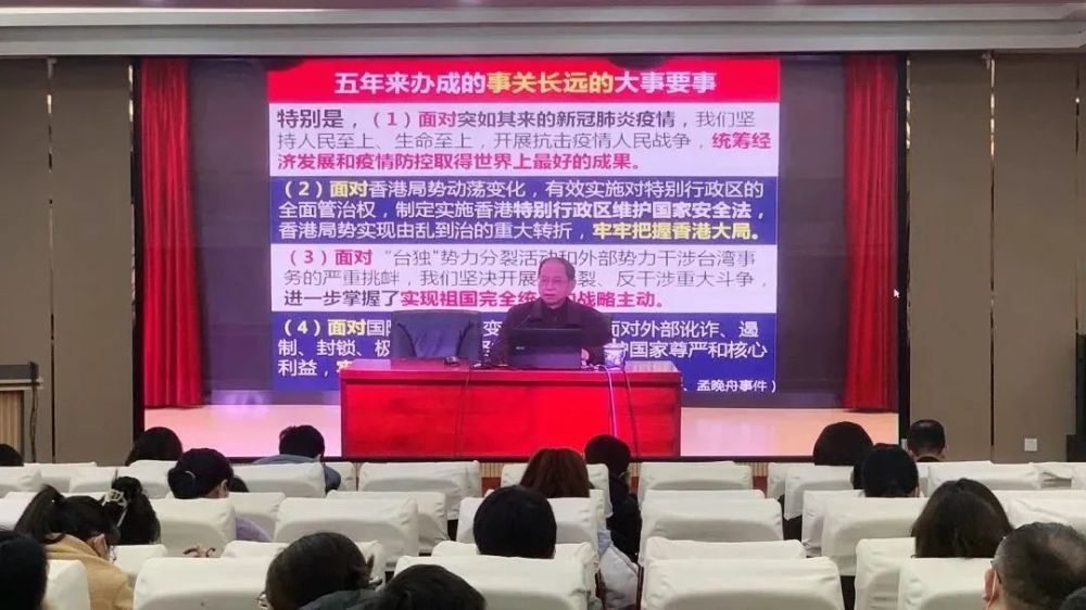宣讲主题鲜明,内容丰富,条理清晰,解读详实,重点突出,为每一位老师提供了行动指南。贯彻落实好党的二十大精神,就是将习近平新时代中国特色社会主义思想以及二十大报告中关于科教兴国战略的相关部署和任务要求,落实并体现在我们的教育和教学工作中。在日常工作中要将办好人民满意的教育作为一切工作的出发点,将立德树人作为教师的重大历史责任与重要岗位职责,树立高质量教育的目标导向,将高质量的教育作为一切工作的落脚点。
