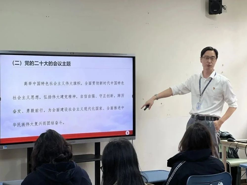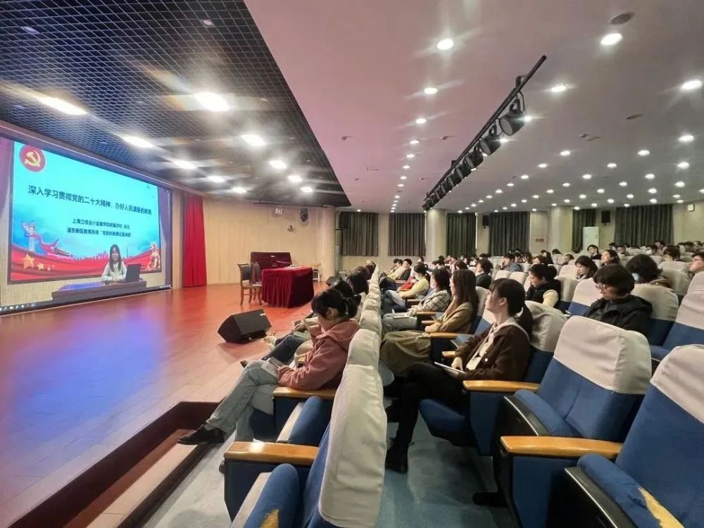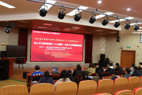 12月2日,进才森兰实验中学组织党的二十大精神宣讲会,由浦东新区教育系统党的创新理论宣讲成员、进才中学北校高之慧老师作主题宣讲。全体党员和部分教师代表参加学习。