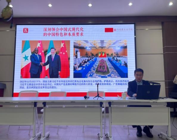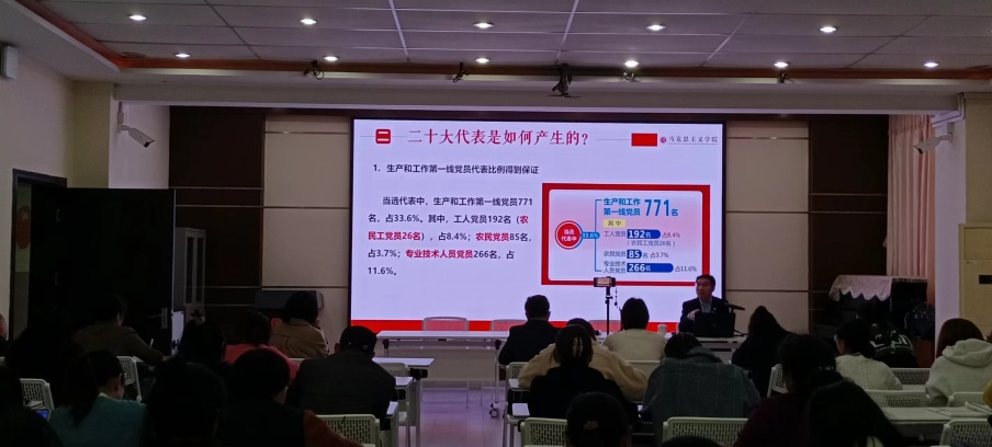 高老师全面解读党的二十大报告,带领大家对二十大的召开背景、主要内容、核心要义进行了深入学习。与会人员纷纷表示,经过学习,更加深刻体会了党的二十大报告的丰富内涵和部署要求,将以更加奋发有为的精神履行好教师的使命担当,踔厉奋发,笃行不怠。
