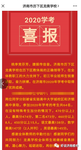 中考出成绩一段时间了,由于各种技术性原因,各大初中对于自己的成绩讳莫如深,即使偶尔几所学校发布喜报,也是对成绩讳莫如深,扬长避短,比如自己人数多,平均分不出色,就罗列自己高分人数有多少,比如自己的头部成绩不突出,人数少,就说自己的平均分,当然了,如果啥也没有,就选择沉默,废话不多说,以下是虾米汇总的部分初中的喜报,绝大多数是真实可信,部分是虚拟群发布,存疑,大家带着怀疑精神看,也欢迎大家提供真实数据,抛砖引玉。