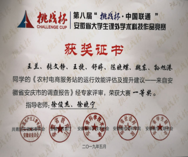 ◆学科与技能竞赛:学生在全国大学生物流设计大赛、“挑战杯”全国大学生课外学术科技作品大赛、全国管理决策模拟大赛、“互联网+”大学生创新创业大赛、全国大学生电子商务“创新、创意及创业”挑战赛等重点国家级竞赛中获得一等奖4项、二等奖6项