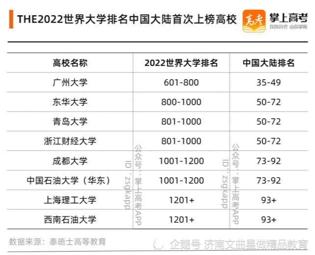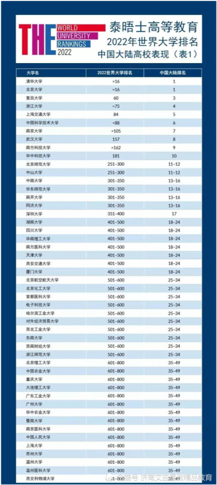 此前,泰晤士高等教育(THE)公布2022年世界大学排名,中国大陆高校表现情况如下