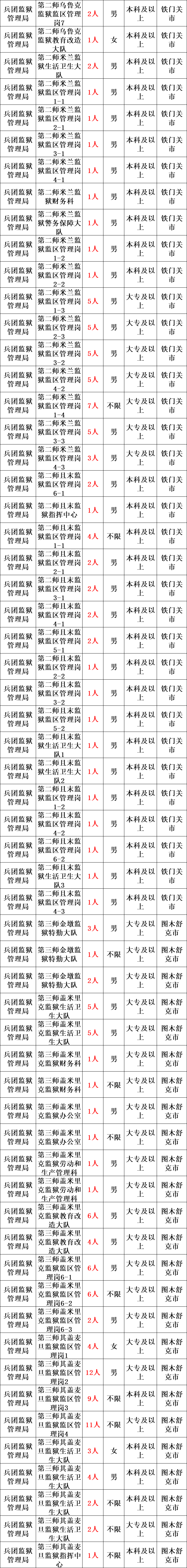 4.录用计划核减及职位改报。笔试开考比例为1:3(职位录用计划数:缴费确认人数),达不到开考比例的,核减或取消职位录用计划。其中,南疆第一、二、三、十四师、边境团场、乡村振兴重点帮扶团场、五类以上地区团场职位;狱医、心理矫治等专业人才紧缺难以形成竞争的特殊职位;残疾人职位;专业要求为法学类的行政执法类职位可以不设开考比例,具体详见《职位表》。