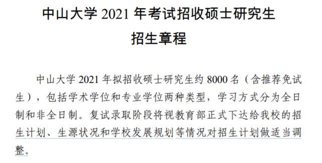 中山大学21考研招生人数发布,计划招生约8000人,扩招达1000人!