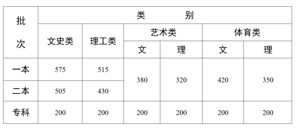 文科本科第一批:538分;本科第二批:466分;专科批:150分。