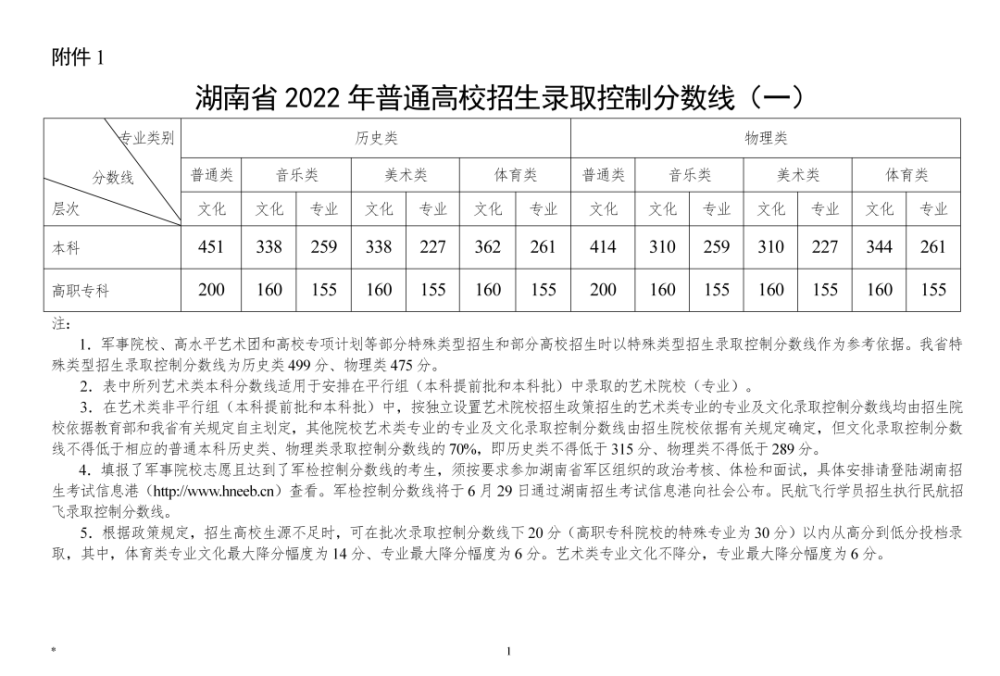 1、本科第一批录取最低控制分数线: